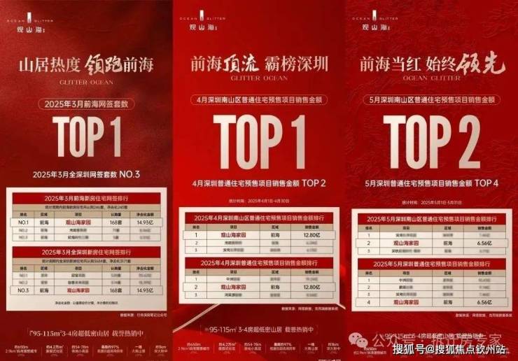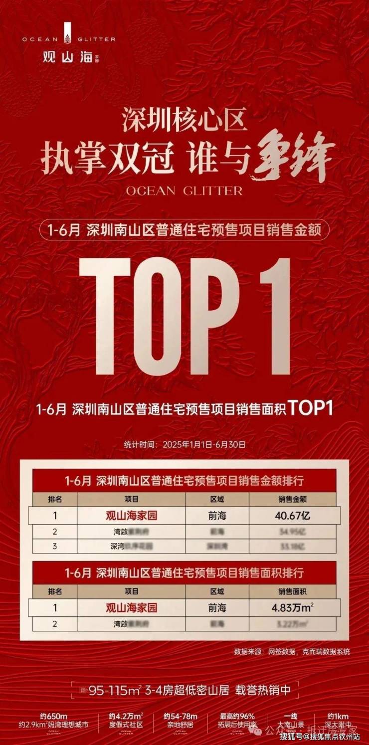 2024年,项目首开劲销14亿,以现象级热销,“撕开”前海低密山居的市场空白;2025年3月,推售295套房源,1500批客户挤爆展厅,单日热销6.2亿,半个月成交量破200套,单周狂销127套;4月底加推5/6栋南向楼王,以开盘当日劲销4.6亿的成交额,再次点燃深圳楼市。观山海家园这些滚烫的数据背后,恰恰体现了置业者对项目品质和潜力的双重认可。