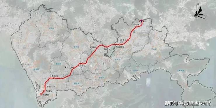 深大城际:该线路起自宝安机场T4站,途径宝安区、龙华区、龙岗区,最终至坪山区聚龙站,全线长69.2公里,设计时速160公里,从坪山-机场仅需40分钟,全线地下敷设11个站点,分别是T4枢纽、机场东、黄麻布、石岩中心、龙胜、民治北、五和、白泥坑、大运、坪山、聚龙,另外预留惠州3个站点。