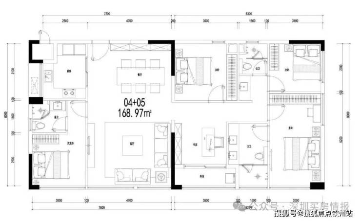 C04+05户型:约169㎡阔绰舒居4房,高处视野私享无遮景致