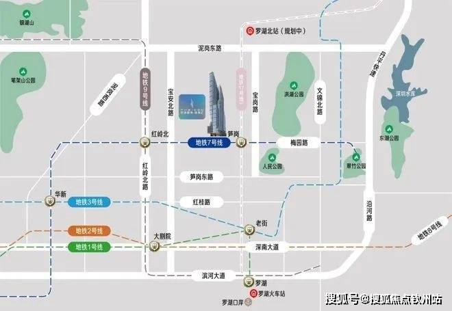 无缝接驳地铁7号线笋岗站D出口(已开通),地铁17号线笋岗站正在规划中,邻9号线红岭北站。
