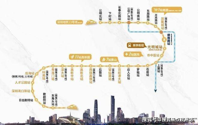 交通配套:项目交通便捷,拥有“三轨三高速”网络。距13号线德雅路站100米,预计2026年开通,7站达南山科技园;1站至光明城站,换乘6号线支线二期及高铁,30分钟抵港穗。