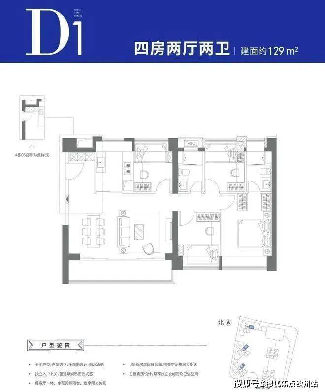 可售户型:103㎡三房两厅两卫、129㎡四房两厅两卫