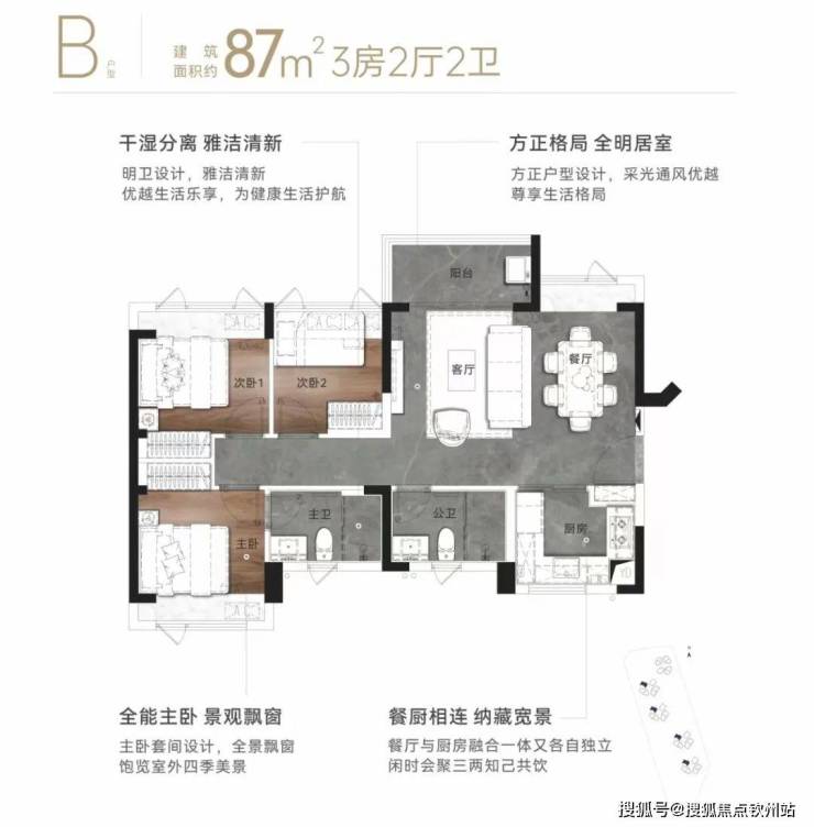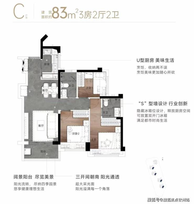 ②83㎡东南向3房2卫,总价252万起;