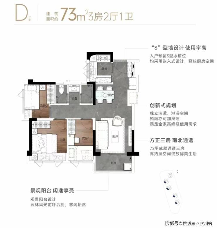 ①73㎡南偏西3房1卫,总价219万起;