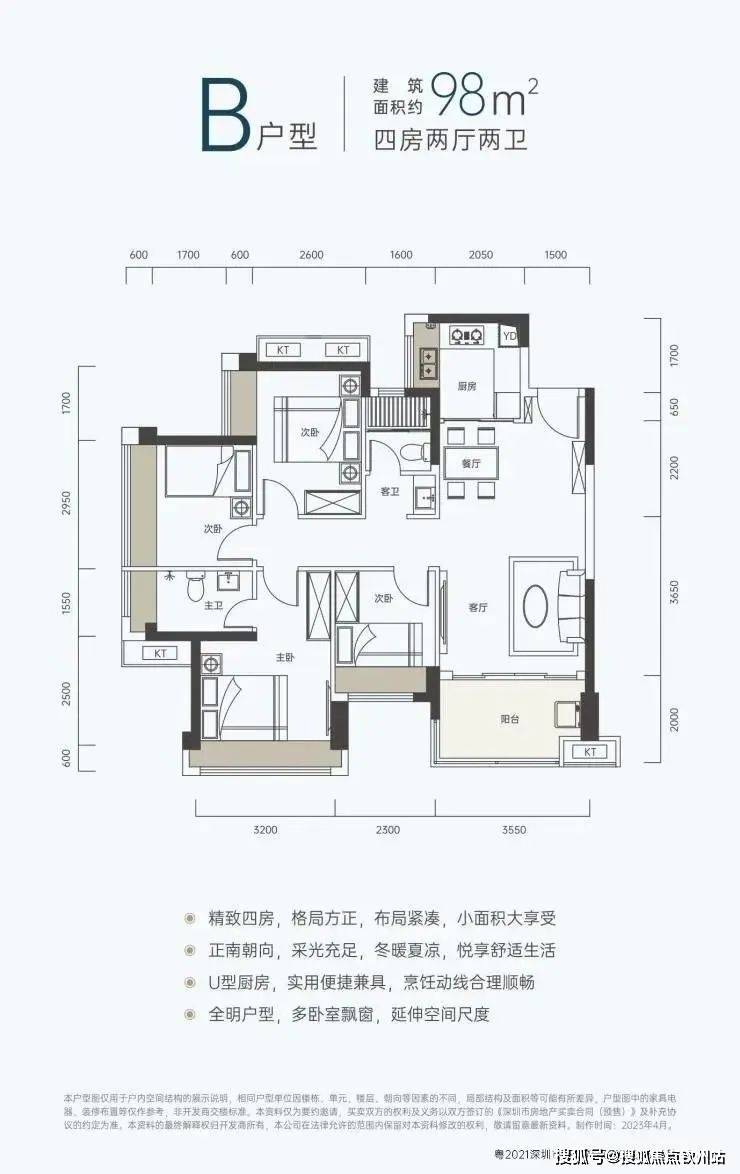 (4)98㎡四房两卫(朝南),折后总价【257-266万】,首付39万起,月供9200起;