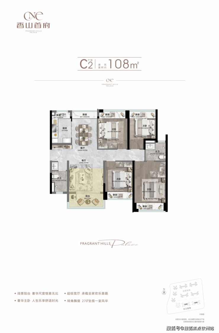 亮点:三开间朝南主卧,270°飘窗设计,最大化赠送