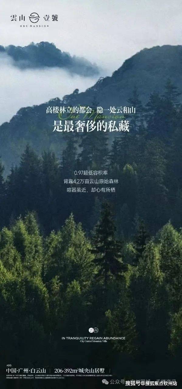 珠光云山壹号择址白云山龙脉东麓,坐拥广州4.2万亩天然城市绿肺,项目总占地面积约9.4万㎡,总建筑面积约13.5万㎡,云山壹号作为广州顶豪缔造者珠光集团登峰之作,整个项目仅规划建设269户低密度山居产品,小区容积率低至0.97。
