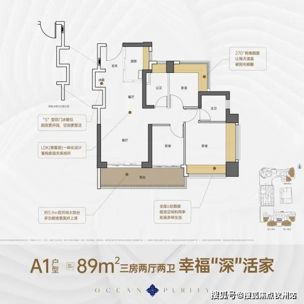 89㎡3房2卫:适合刚需家庭,空间布局紧凑。
