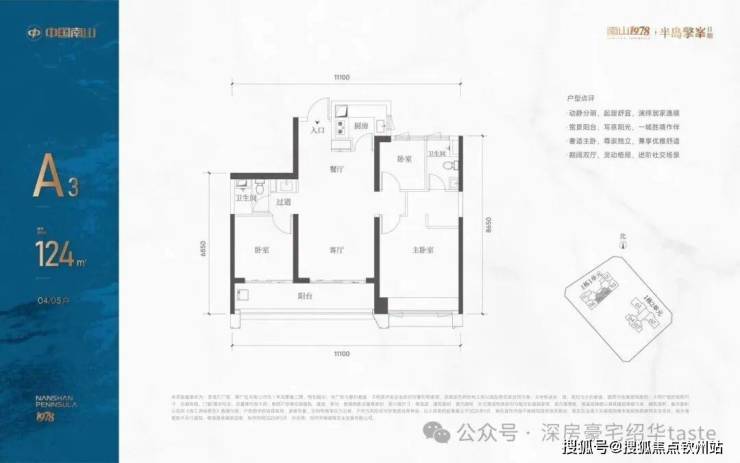 建面约124-203㎡全生命周期天幕户型,360°采光通风,270°环景主卧,山海日常推窗可得。背山面海