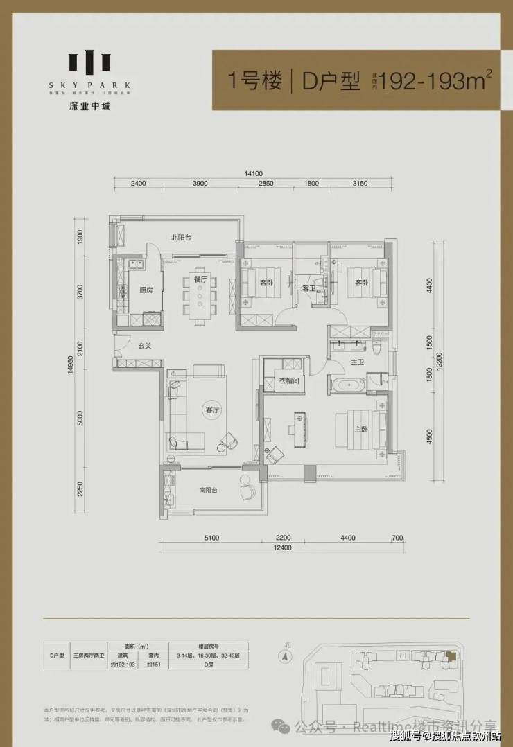住宅住宅共有三栋,2/3栋为28-29层,合计192套住宅;1栋为43层,共222套,其中6A栋为6-35层为办公,37-42层为公寓;6B栋6-9层为酒店,10-42层为公寓。