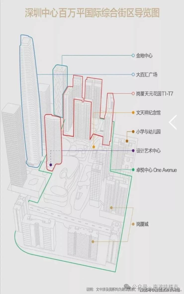 “深圳中心·天元综合体项目”位于福田CBD核芯区域,占地面积约22.3万㎡,总建筑面积约140万㎡。包括约29万㎡商业——卓越中心(800米中央大街),两座超甲级写字楼——金地中心、大百汇广场,城市豪宅——岗厦天元花园,文天祥学校,文天祥纪念馆,设计艺术中心等部分。