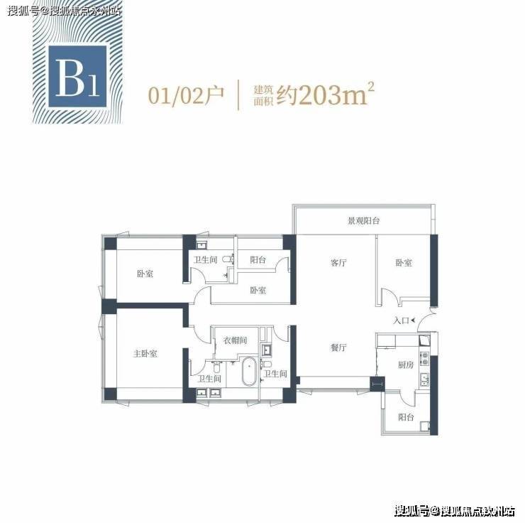 双主卧套房设置且270度景观面,同时主卧带独立衣帽间,竖厅南北通透带7.4米大阳台。