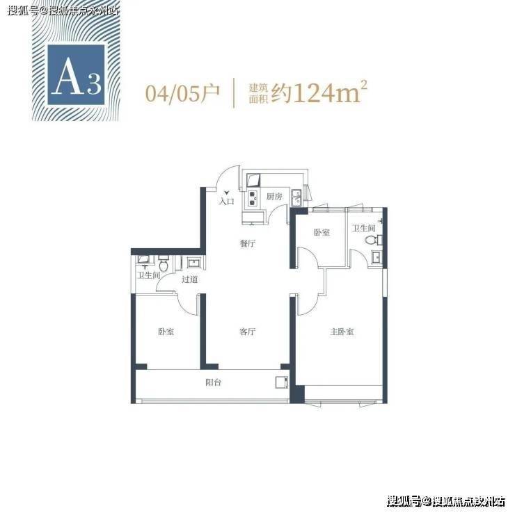 124㎡的3房2厅2卫:设计的是双龙抱珠格局,客厅超大观景阳台,东南朝向,缺点有黑卫,小卧室对天井外走廊采光。