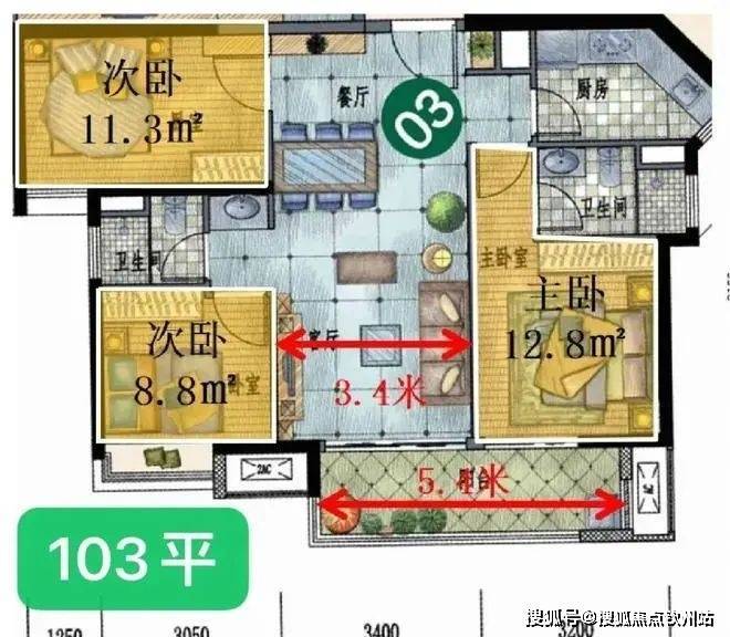5.8m宽厅+12平主卧+270°瞰景飘窗