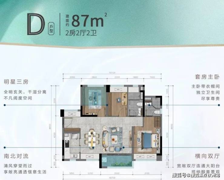 建面约87㎡2+1拓展空间,稀缺大横厅,明星户型