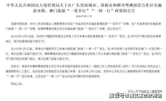 自2025年1月1日起,横琴粤澳深度合作区户籍居民和居住证持有人可以申请办理赴澳门旅游“一签多行”签注,在1年内可不限次数往来澳门地区,每次在澳门逗留不超过7天,一签多行” 便利政策的实施,将促进琴澳两地文旅资源进一步融合发展