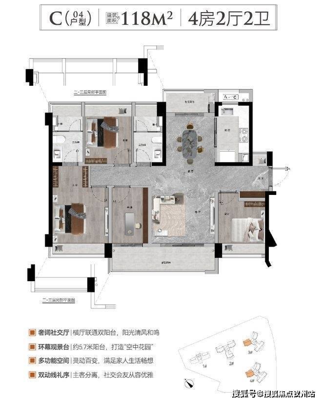 同时,社区还规划了森林客厅、游憩草坪、宠物乐园等全龄段共享空间,以及儿童剧场、儿童乐园、4 点半学堂、颐享中心、邻里中心等多功能场所,满足不同年龄段业主的休闲社交需求。