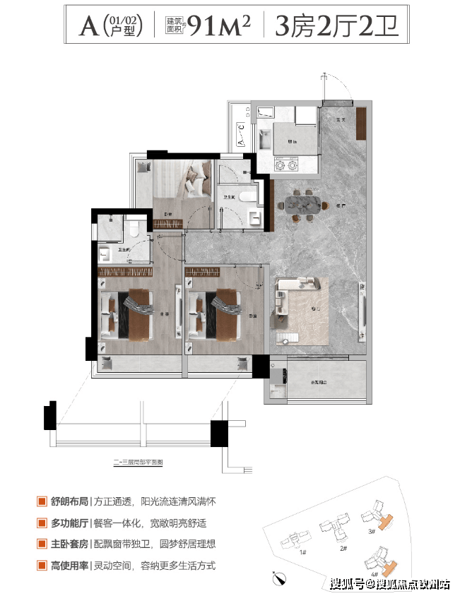 户型产品:建筑面积约91-173㎡三至四房