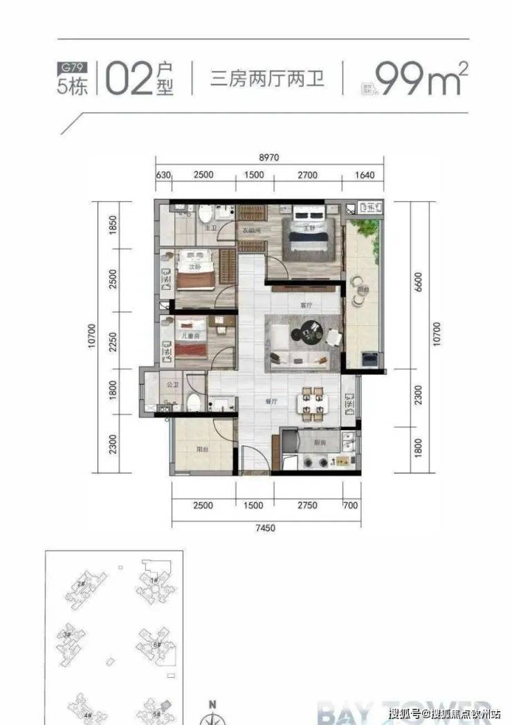 142㎡三室两厅三卫(G83户型):全明格局,主卧带独立卫生间,空间布局合理。