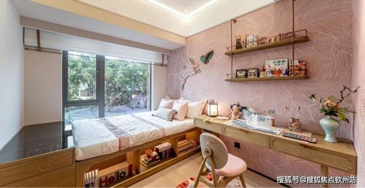 儿童房以童话诗人气质为基底,浅粉色莆田古建筑风幕墙与可爱的小鹿、灵动蝴蝶交织在一起,宛如一座梦幻般的城堡。