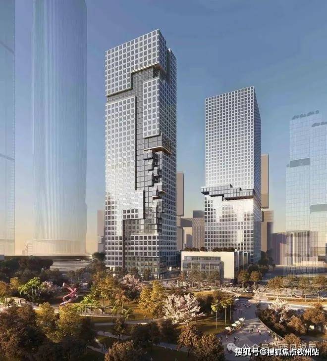 SLD、CCD、HHD三大设计机构联袂执笔,建筑形态引入中国传统高山流水意境,外立面创新采用数码像素化表达,焕新城市天际。