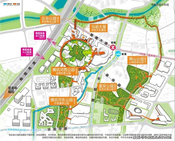 5大公园融入社区/起步即城市级公建/规划梅观高速直连(规划中),深圳独创规划超3.6km空中连廊,串联5大公园,商业,住区、办公、文化休闲、生态康养等;