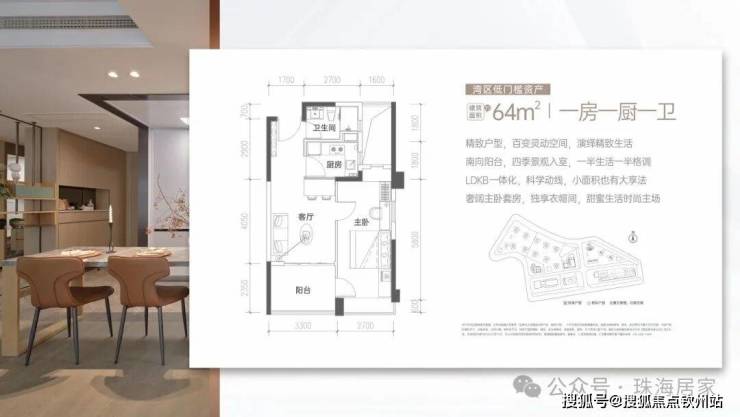 建面约64㎡ 酒店式套房 高拓使用率