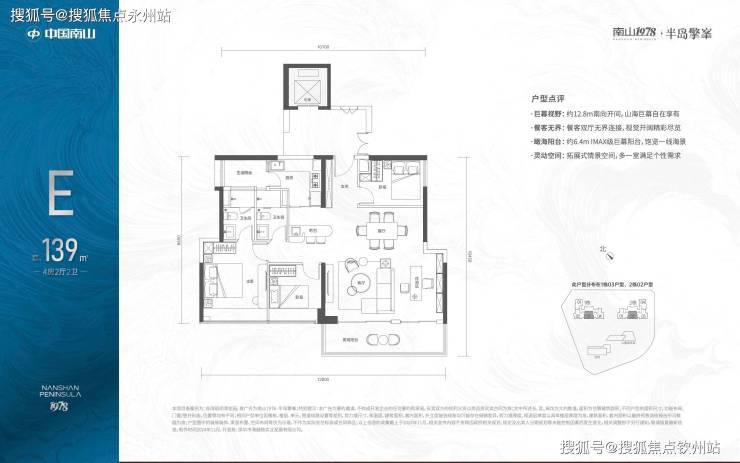 另外,139㎡4房2卫和167㎡5+1房3卫户型则位于32至43层,户数有限,南向视野开阔,可观赏海景,整体居住舒适度高,高区景观无遮挡。