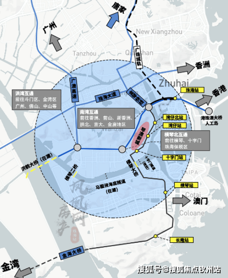 更不用说此地段区位,可谓独得恩宠。除了密集的路网、桥梁隧道外,港珠澳大桥延长线的落脚于此,而珠机城轨一期更已开通、二期将联通珠海东西部,海量的人流、资金流向十字门而倾,毫无悬念。