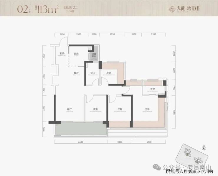 02.03户型·113㎡·4房2卫·竖厅·西南