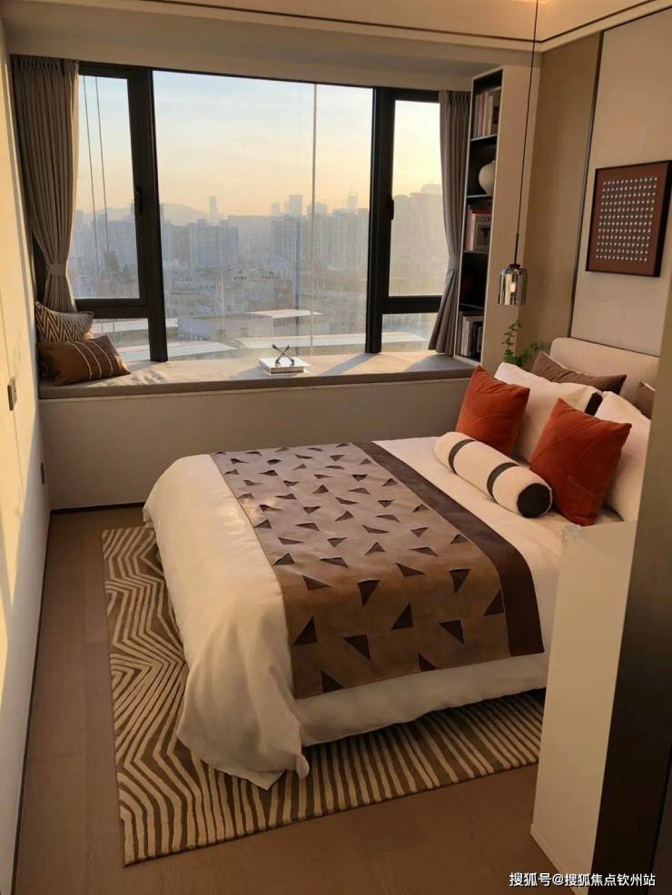 主卧面积超过20平,为居住者提供了充足的休息空间,同时还可轻松容纳衣柜和化妆区,而大面积的飘窗则成为了纯粹的观景平台,让人尽享窗外美景。