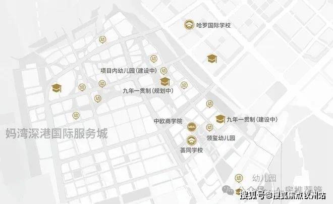 项目自带1所18班幼儿园,东南侧规划有1所九年制36班公办学校(待建),目前还没公布,大概率也是南二外集团校区,会跟紫荆府同步交付;另外在东南侧距离700米处有一所南山第二外国语学校创新学校妈湾校区(在建,预计明年首届招生)。