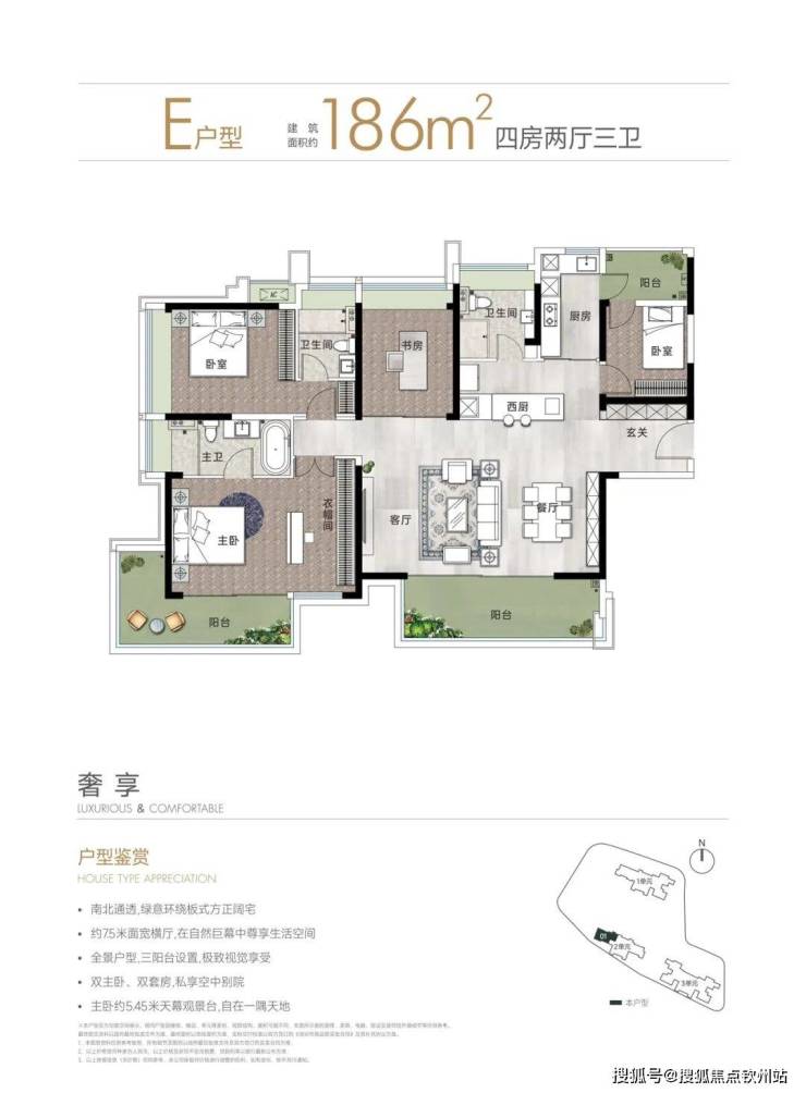 可售商品住宅297户将在本批次全部推出,面积段包含建面约90-110-111-126-155-186㎡2-4房。