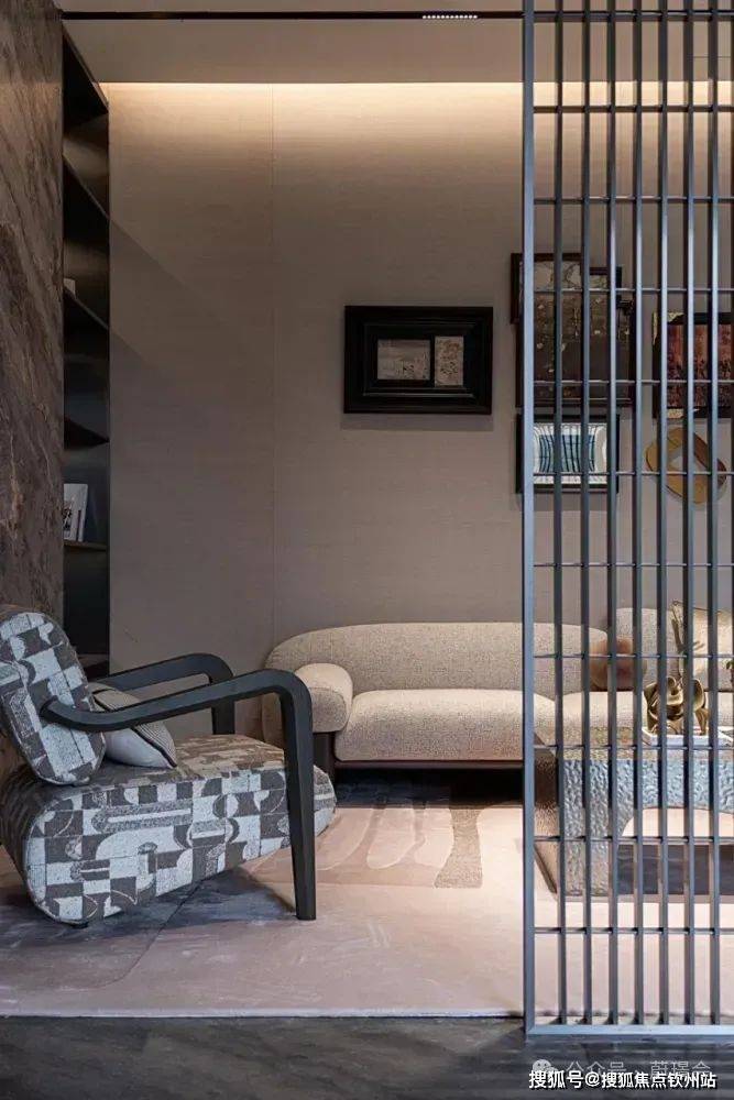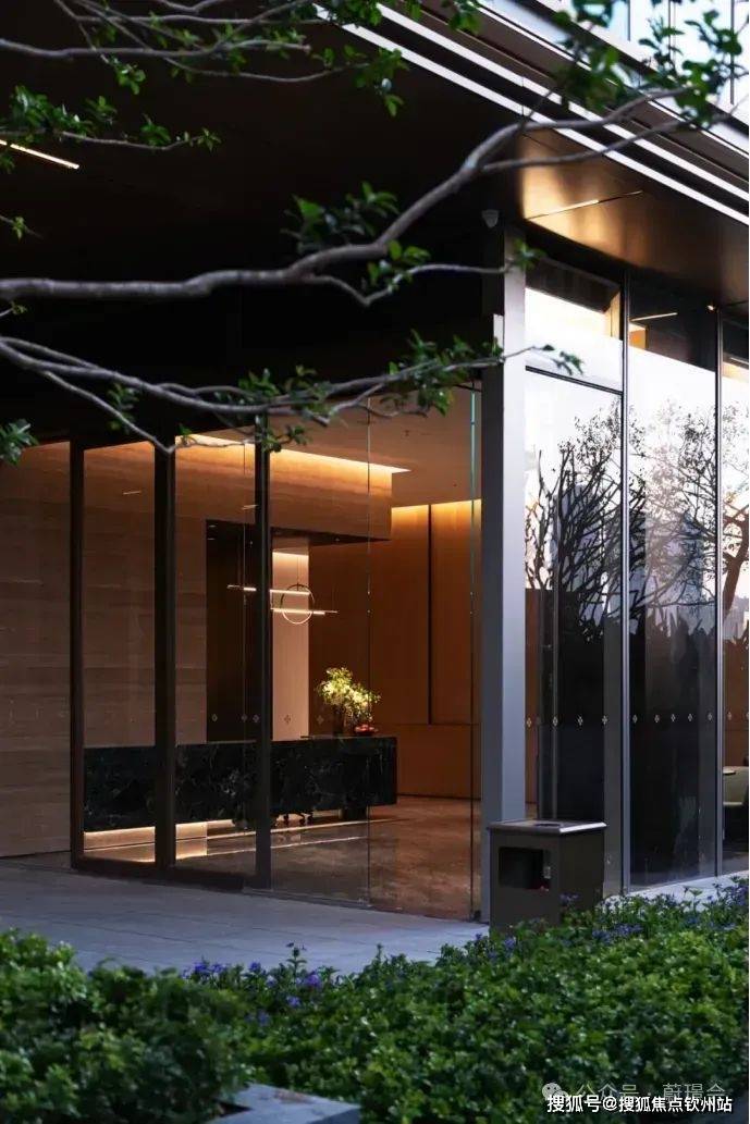 双层环岛圆型水景➕宝格丽黑奢石,还上百块巴西铂金钻拼接成的奢石矩阵,与水波纹纯铜锻雕碰撞出“九五之尊”的奢石景墙,彰显出非凡的尊贵气质。同时,“东魂西技”的设计手法,将珠海市花“勒杜鹃”造型融入格栅之中,完美融合了城市文脉符号与建筑设计🌿✨