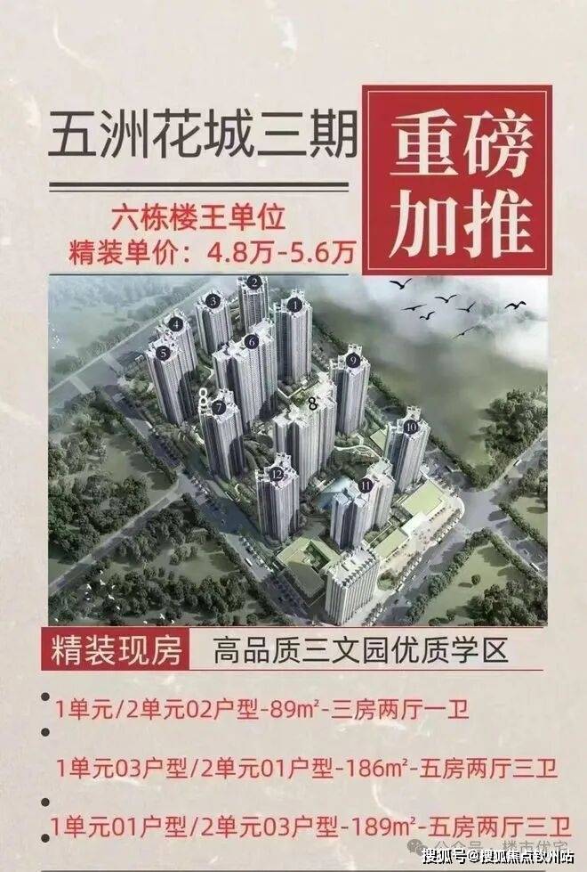 五洲花城3期这次放出的房源主要位于6栋,6栋位于小区的正中轴,通过分布图就能看出6栋是妥妥的楼王单位。