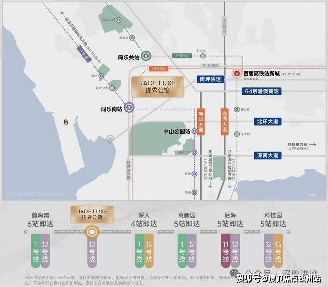 15号线同乐关站(在建中,预计2028年12月开通),串联宝中/前海/深圳湾/西丽,也被称为深圳“一环线”,本项目为环线上的重要一环;