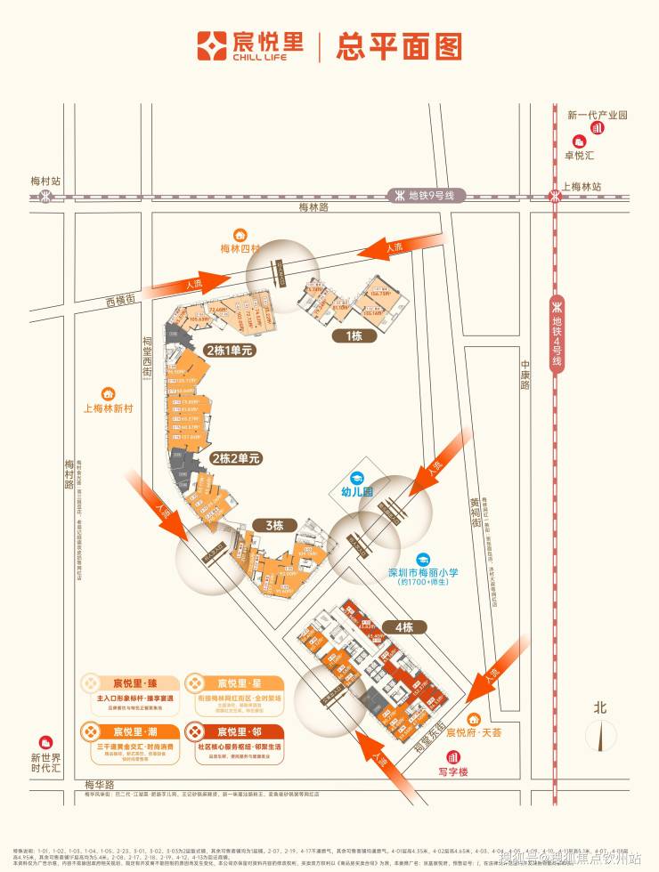 项目为双地铁口物业(4/9号线【上梅林站】与【梅村站】环绕),3站市民中心、4站福田高铁、6站抵达福田、皇岗双口岸,高效接驳深港客流。地铁带来源源不断的消费人潮,为商铺注入持久活力。