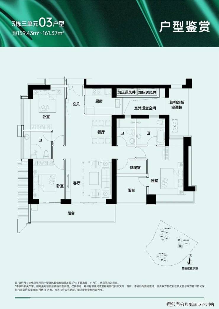 (3)159㎡四房三卫:折后总价1046-1087万,单价6.56-6.73万/㎡;