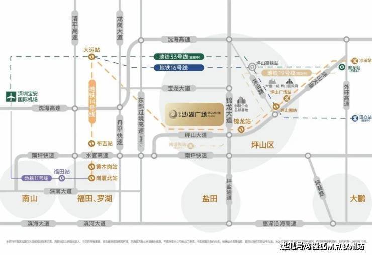 地铁:紧邻地铁14快线坪山门户站——锦龙站(约600米),12站福田岗厦北。周边临近地铁16号线(14号线一站直达坪山围站换乘)、地铁19号线(规划中)、地铁33号线(在建)。