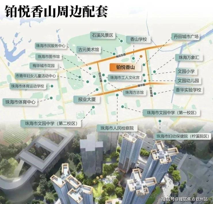 项目在新香洲,属于珠海主城区的核心地段,周边配套成熟,尤其是教育、商业、医疗和公共服务这些方面,优质资源密集。
