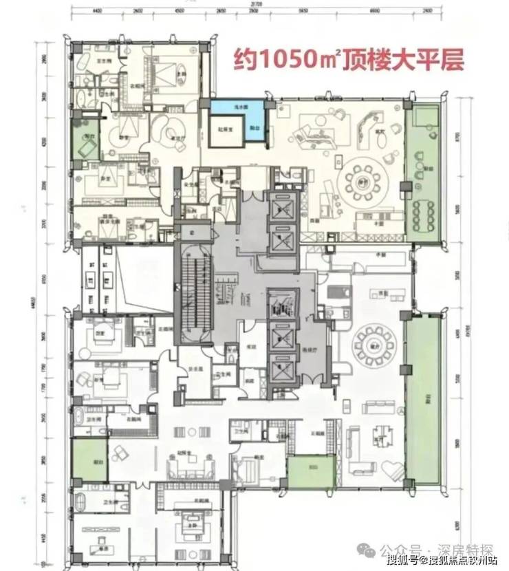 顶楼:约1050㎡整层大平层(仅3套)。