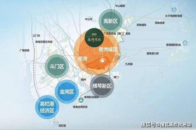▫南湾位居珠海地理几何中心,东面一桥之隔即为香洲老城区,南面与横琴粤澳深度合作区、十字门中央商务区一山之隔;西面规划鹤州新中心;