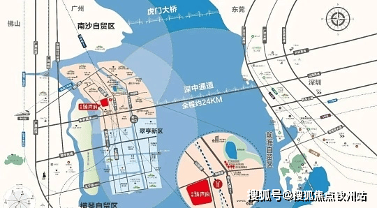 深中通道已通车,30 分钟直达深圳前海;距规划中地铁香山站约 800m,临近南中珠城际站点;门口有深中跨市公交,接驳翠亨快线,20 分钟达中山市区,4 条高速贯通,5 大机场环绕,大湾区交通便捷。