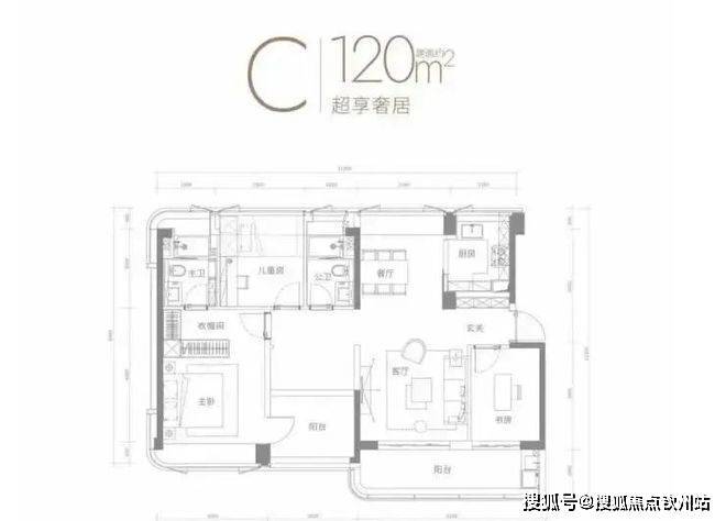 约120㎡户型,玄关处多一间房,跟客厅共享6.2米阔景阳台。这个空间可以做成书房或者娱乐室,工作休闲都有一处安静的空间。还能跟客厅打通,还形成一个开间6.2米的超大横厅。主卧套房尺度达到约3.4米*4.6米,带步入式衣帽间和独立卫生间。