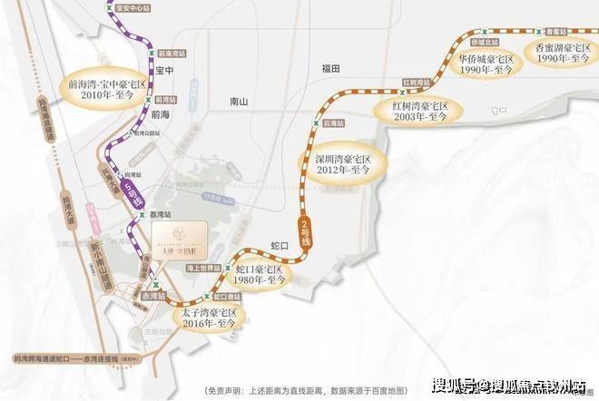 项目距2号线(豪宅线)与5号线(发展线)首发赤湾站约300m(直线距离),从此,坐地铁而不是站地铁,未来新小南山隧道(预计2027年竣工)、望海路升级等重大交通配套持续落地,咫尺间连通蛇口、前海。
