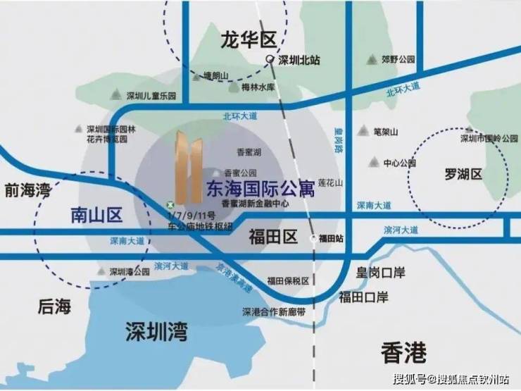 地理位置优越,是1、7、9、11四条地铁交通枢纽上盖物业,交通便利,从福田高铁站抵达香港西九龙站约14分钟,畅达北京、上海等全国重要城市。城市主脉深圳大道接驳京港澳高速G4(广深高速)交汇福田出入口,约20分钟直达深圳机场,畅达深圳湾等各大口岸,拥有“地铁、高铁、城市主干道、高速”多维立体交通,尽得高效与便利。