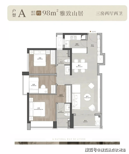 98㎡三房两厅两卫:紧凑实用,LDKG 一体化,动静分区,总价约 240-270 万。
