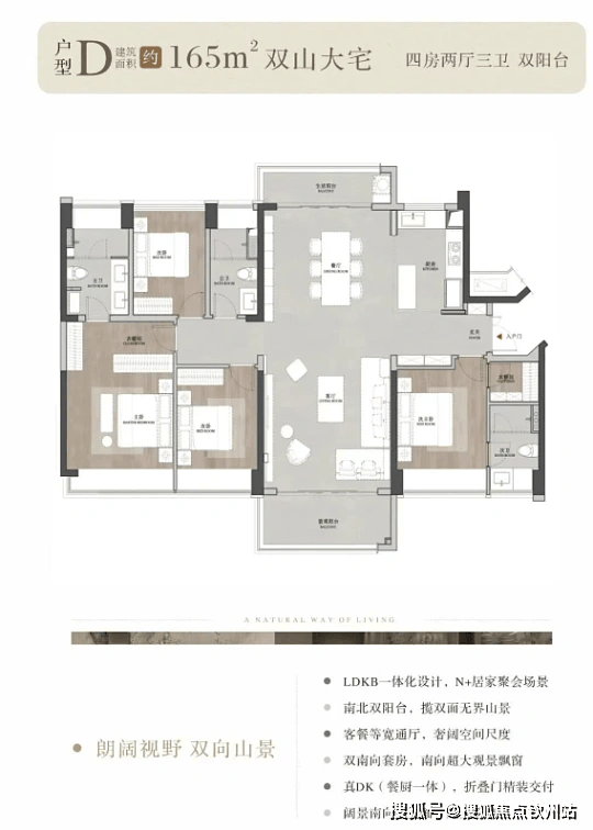 165㎡四至五房三卫:两梯两户,南北通透,主卧带步入式衣帽间,总价约 410-500 万。