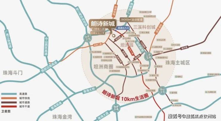 朗诗新城占位珠中黄金交汇“C位”,坦洲大道通车后(国庆前全线贯通), 15分钟 直达珠海华发商都, 25分钟 接驳港珠澳大桥, 1.3公里 直达广澳高速坦洲收费站(快速接深中通道),真正融入 大湾区1小时生活圈 。这里既是“双城通勤的起点”,更是“珠中生活的终点”——下楼即享珠海的繁华,出门即达中山的从容。