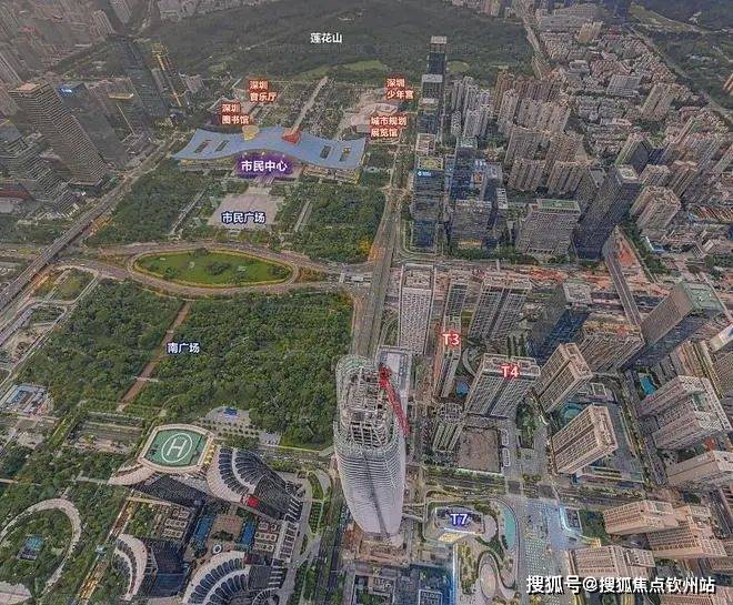 位于深圳中心区双龙起舞带、东龙龙脊位置,以东方千年礼序拱卫着市民中心和莲花山。▽
